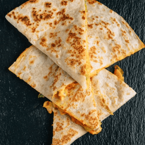 . Quesadilla, burrito and taco.